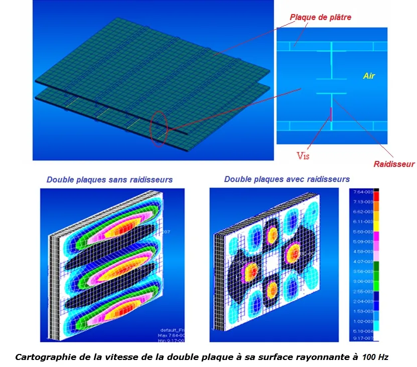 Modélisation par éléments-finis (à l'aide du logiciel NASTRAN) du comportement vibro-acoustique d'une pièce, produit,....